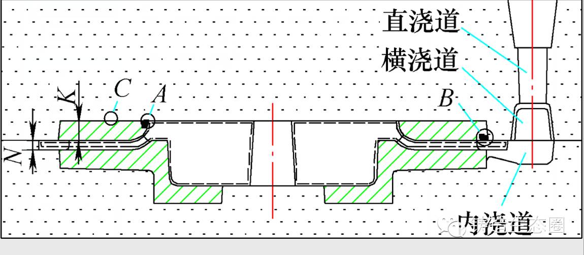 ⑵厚壁且风道薄铸件容易出现该缺陷。